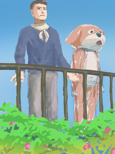 genjitsutouhisha.hatenablog.com とりあえず水面らしく描けたと思っています デジタルだとキャンバスが簡単に広げられます 継ぎ目は見えます 魚 そして犬 ラー